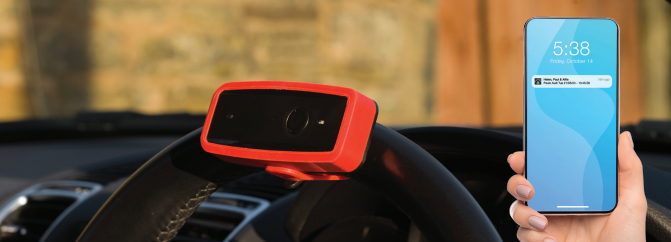 The W-VP comes with a specifically designed strap that is available in 3 colours allowing you to connect it to your steering wheel